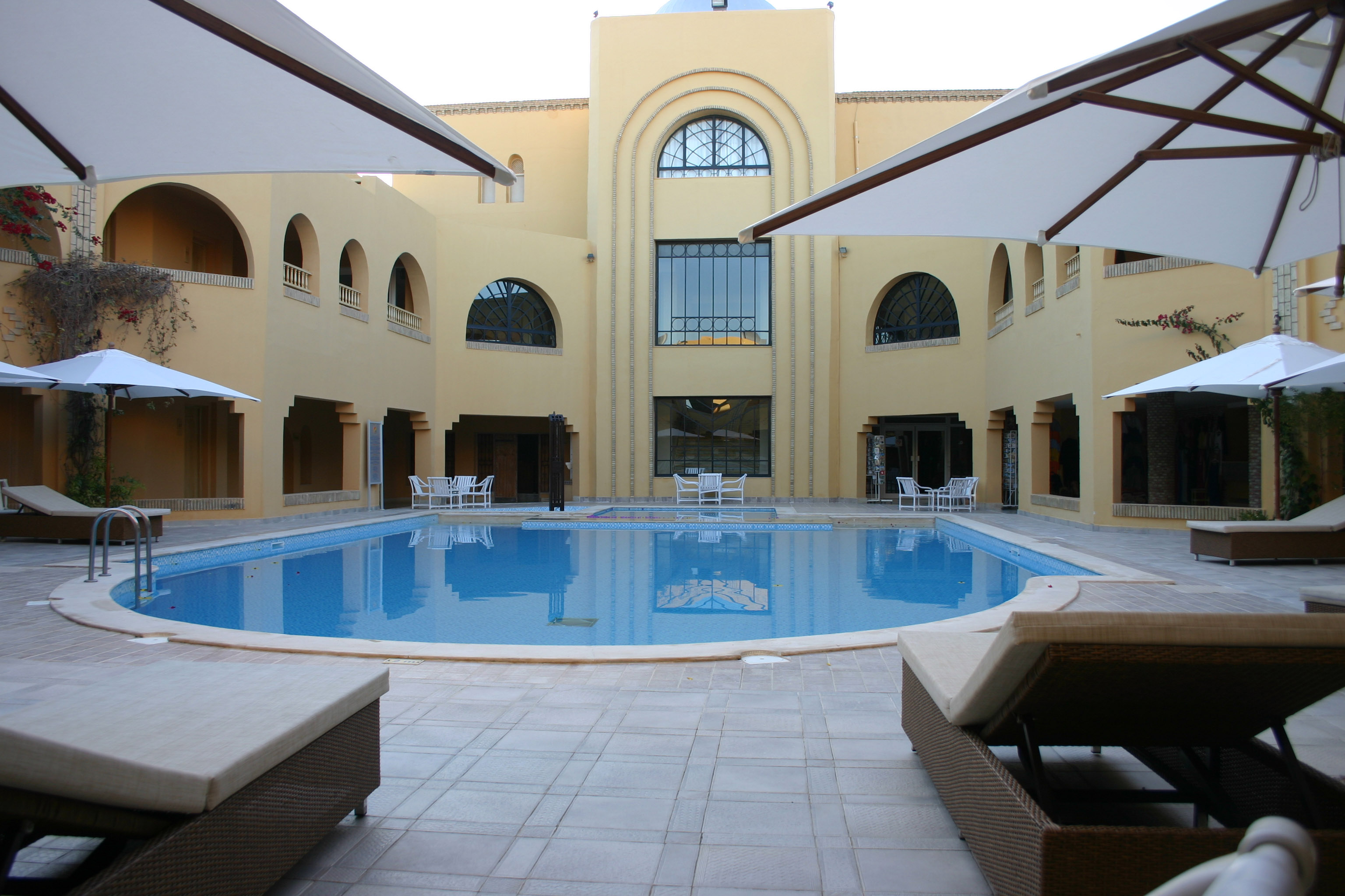 L'hôtel est conçu autour de trois patios thématiques (La Fontaine, La Piscine et La Terrasse), offrant des espaces de fraîcheur indispensables dans le Sud tunisien. Son décor allie tradition saharienne et confort moderne, créant une ambiance paisible et authentique.